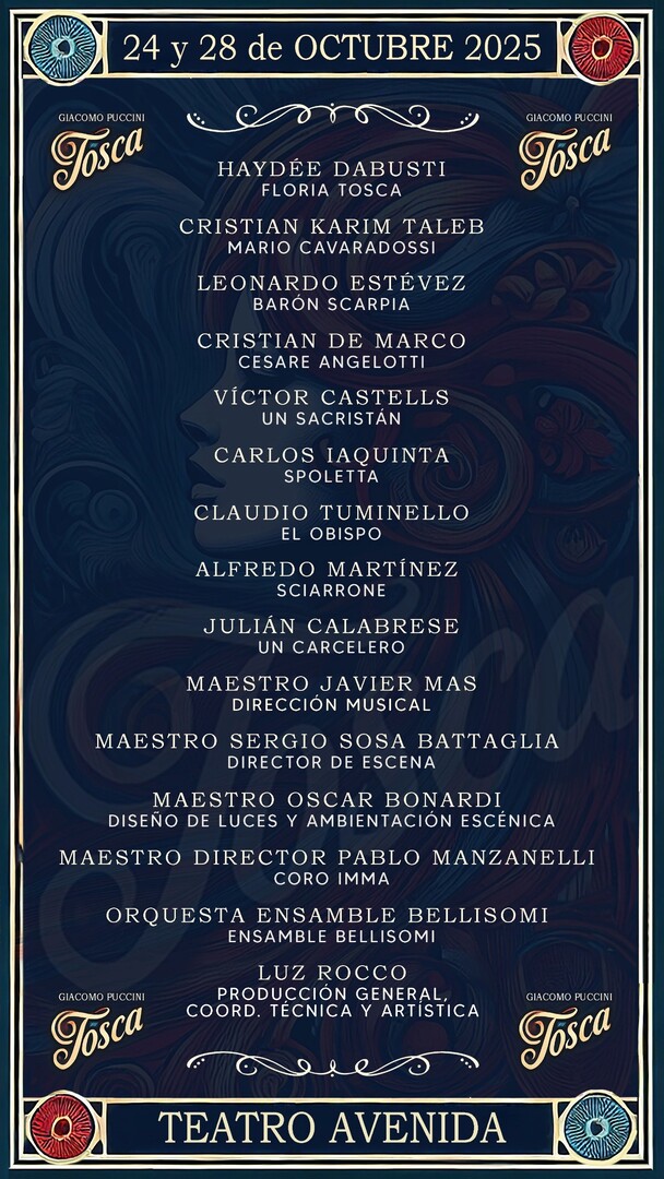 Soprano Haydee Dabusti sang two performances of the role of Puccini on 24/10/25 & 28/10/25 at the Teatro Avenida